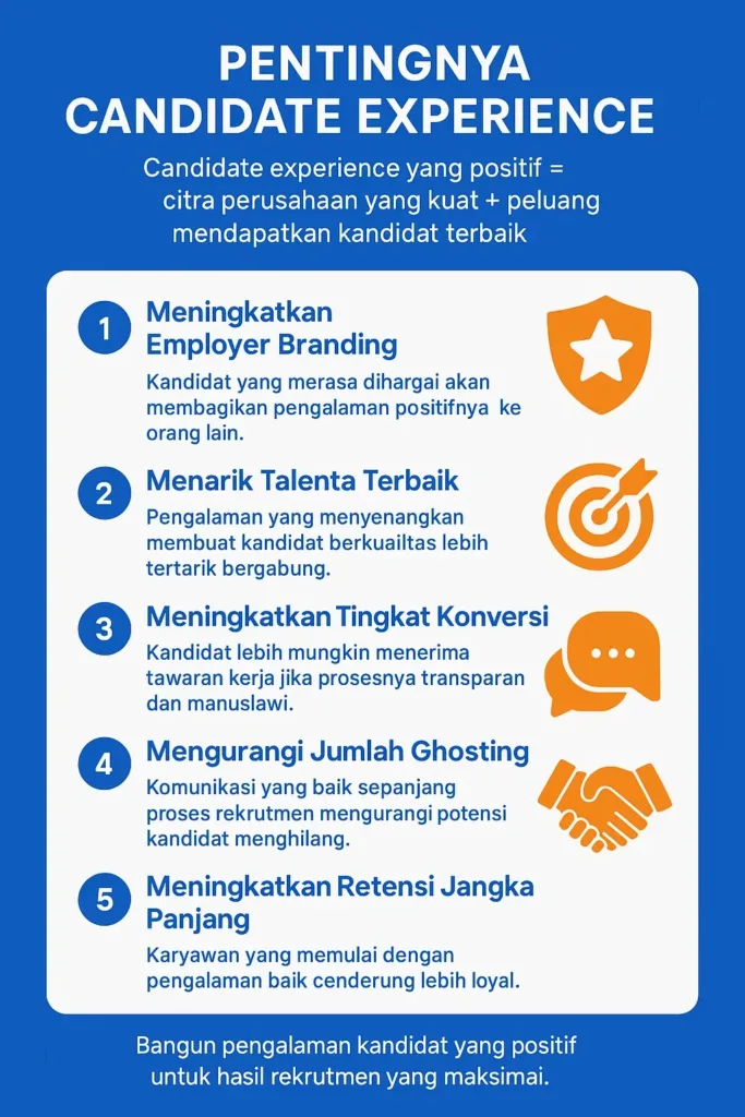 Pengalaman kandidat sangat penting karena membantu perusahaan menjaga reputasinya, serta dapat menarik top talent di tengah persaingan.